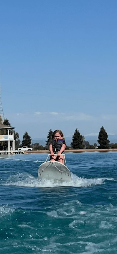Yesterday my girls got to have their pals over to the ski lake to play. And I got to see my good friend and spend time sitting on the dock enjoying sunshine while we let our kids roam around the property. I also got to ski. It’s a good Northern California spring weekend when you get to snow ski on Saturday and then waterski on Sunday.