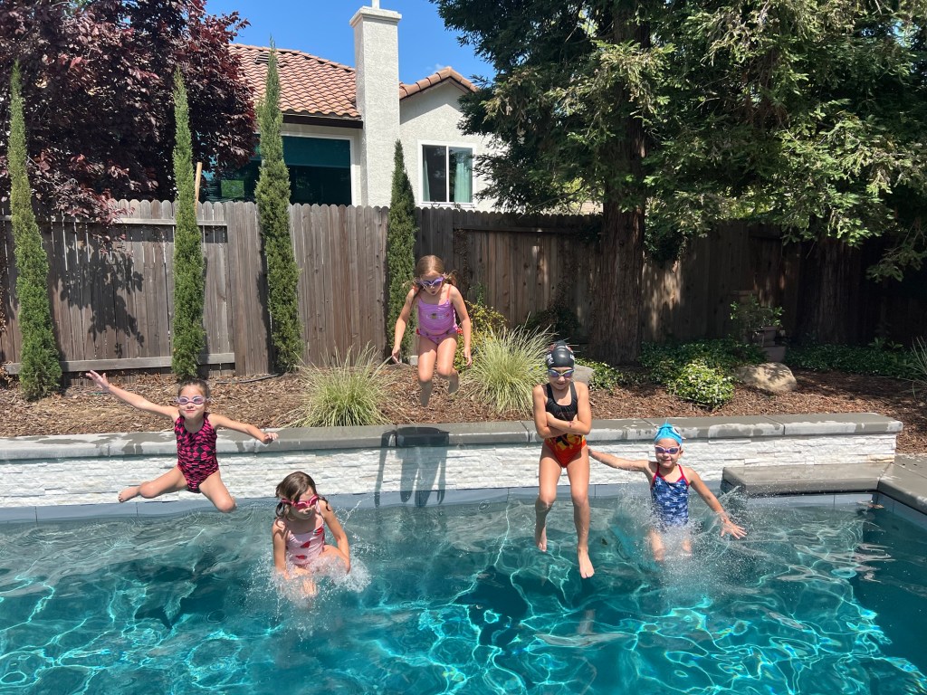 The first weekend of the summer started out with a fun swim party for the girls and their classmates to celebrate the last day of school. We made it a Hawaii/Lilo and Stitch theme. It was really fun and made me feel so grateful that we were able to put in a pool a few years ago. Swim parties are fun! And I’m grateful that we live in a community with so many nice families who want to gather and celebrate. We were invited to a party later that day – so we had two pool parties in one day. So much fun for these kids (and it’s even fun for us grownups, too!)!