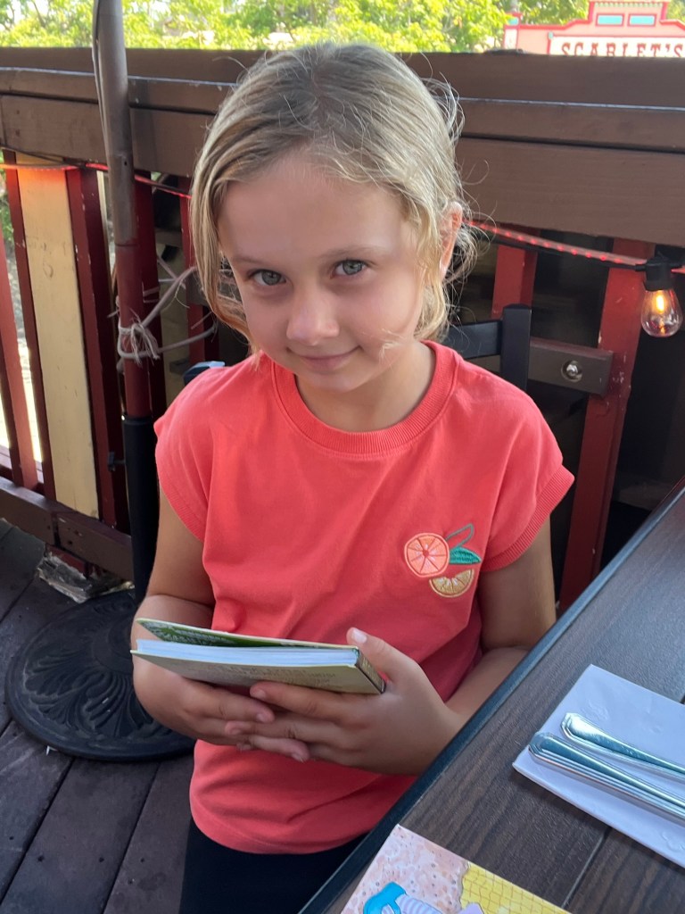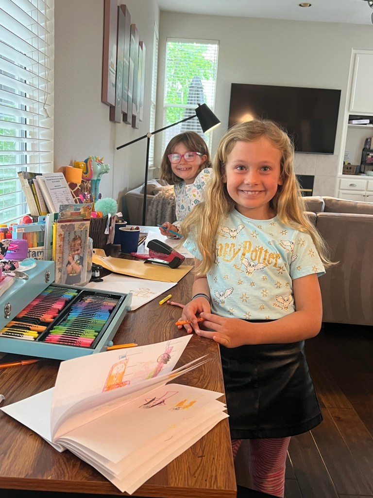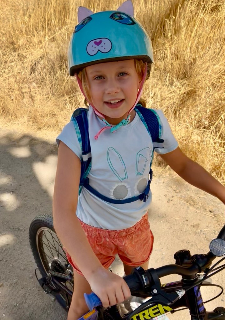 She loves to write and illustrate her own books filled with funny stories and fantastical creatures. Like her sister, she absolutely loves books. She can tear through a good story on her own but still enjoys reading together, too. Riley is independent—she does her own hair, plans her outfits, makes her snacks, and even heads out for walks or bike rides on her own to observe the world.