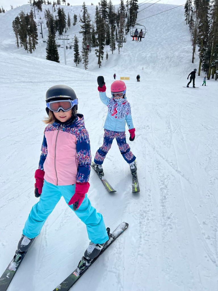 Taking two 7 year olds skiing without your co-parent is not for the weak. But luckily these little girls know how to have a fun time on the slopes. The hardest part is getting from the car to the lift. There’s just no easy way. It’s a lot of gear. Ski boots are the worst. The parking areas are a trek to the lift.